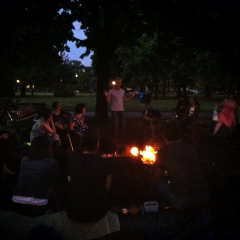 True Stories Told Live hosted its first-ever TSTL By Firelight last week in Dufferin Grove — but we very nearly didn’t! On the Tuesday night, Marsha’s dream of a campfire-side TSTL were under threat: big, black, Old Testament clouds were looming over Toronto, and the city had been issued with a tornado warning. Ever the optimist, Marsha told us we’d wait to the last minute before cancelling, and sent round a message which essentially said, “What do you want your memoirs to say?”. Team TSTL weren’t going down that easy!