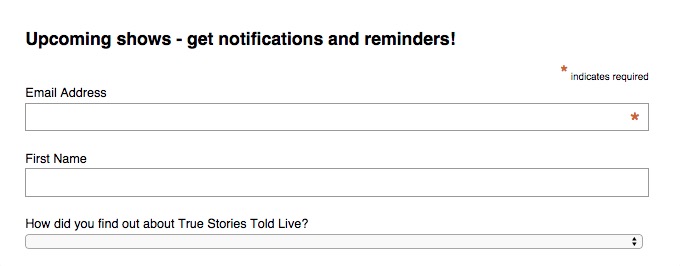 Thanks to the INCREDIBLE audience at the November show, and to the Storytellers! I’ll post their links below. In the meantime, please block off your calendar for evening of
